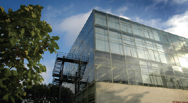 The Academy’s second building is a 2003 expansion by Benthem Crouwel Architects. The north side of this building houses studio spaces, while the south face is reserved for offices. On the ground floor is a reception area. The south and east façades are built up of cast glass elements, numbering some 16,000 in all.